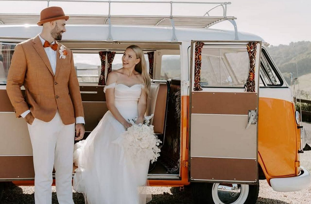 Wilco and Elise love Volkswagen kombis and through a colleague of Wilco's brother that new of Hazel, they found our website and sent us their request to use Hazel for their wedding day. They were keen to bring their own decorations and quickly transformed Hazel into a true wedding vehicle with some beautiful flowers! Definitely one of our favourite weddings with lots of fun and laughter!
